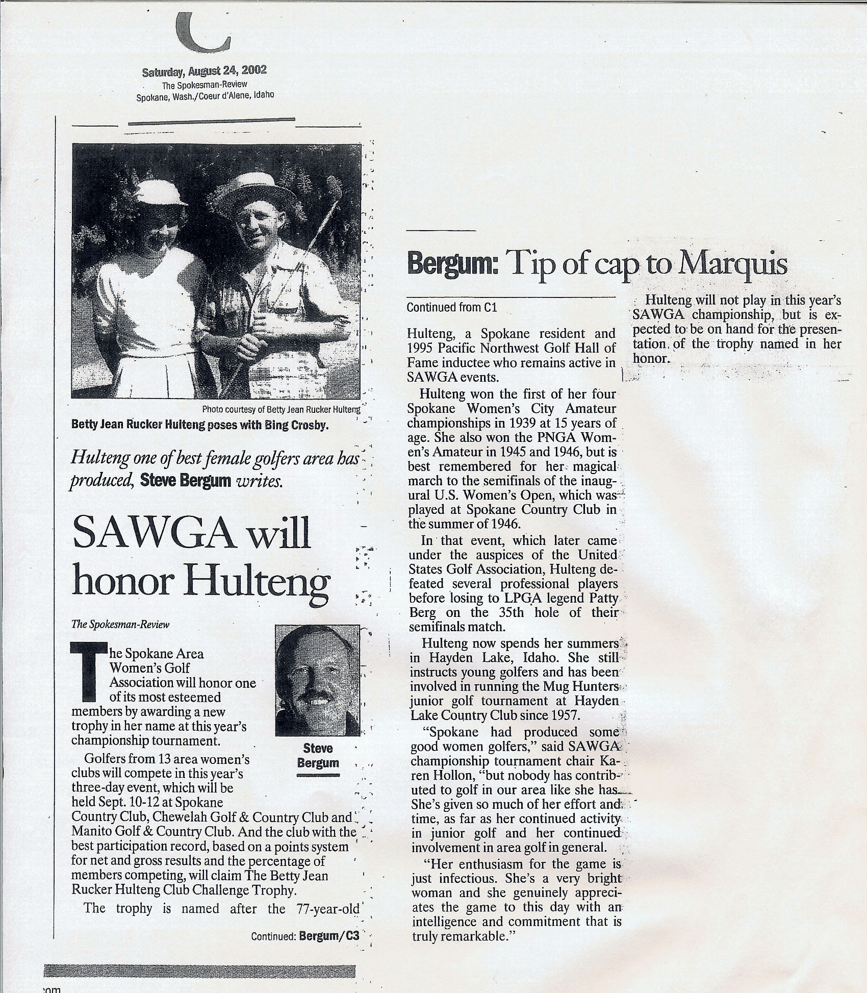The Spokane Women’s Golf Association, SWGA, was first organized in 1953 when it became necessary to sponsor the annual city tournament. They also were to schedule and carry out a regular program of Spokesman-Review Cup matches and Sweepstakes events. Riverside changed it’s name to Downriver in June 1955.