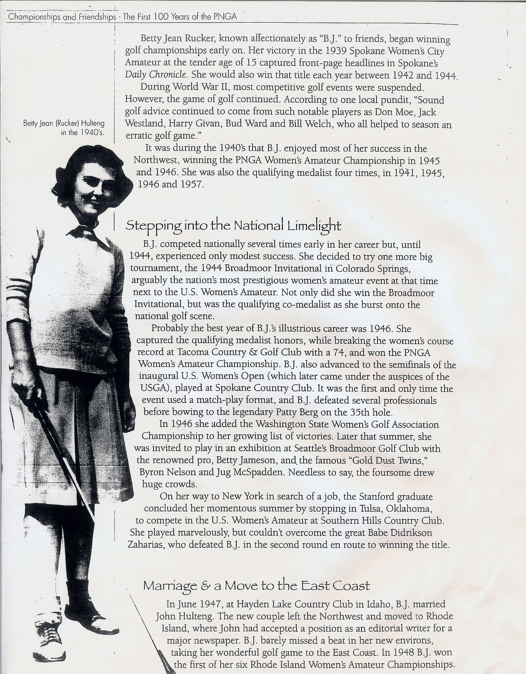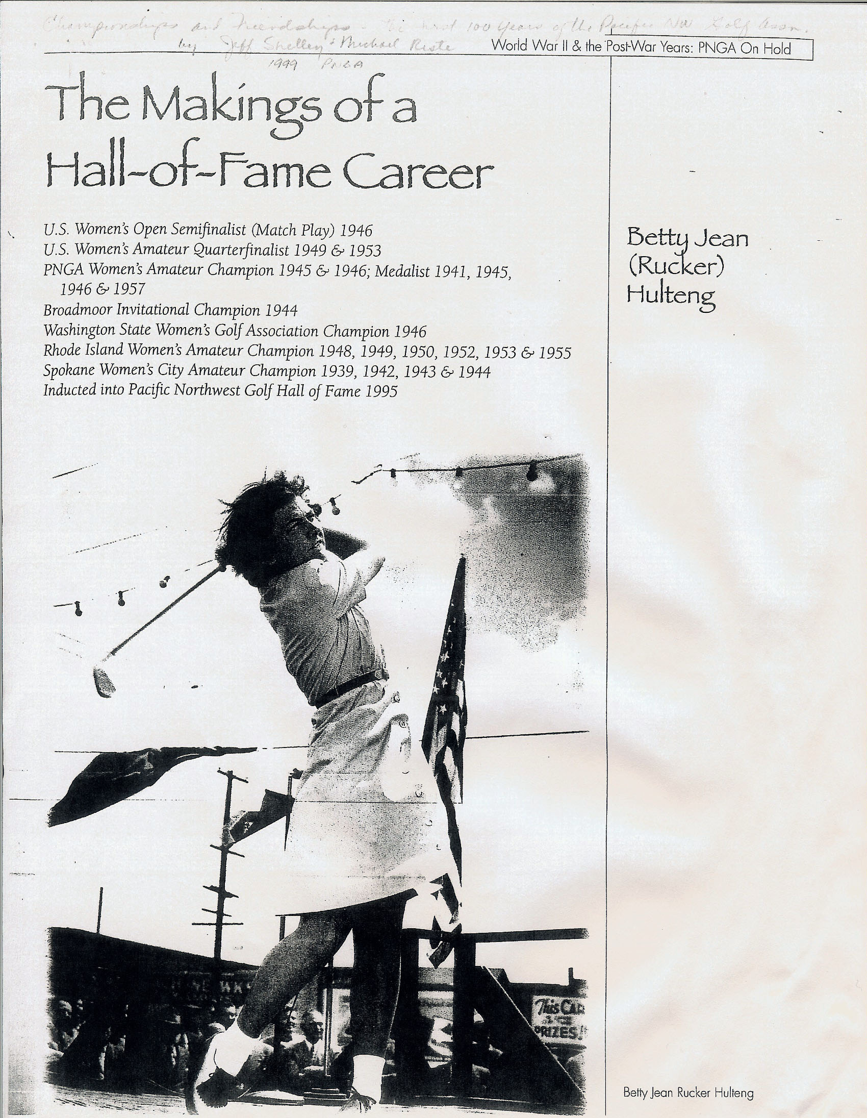 During the war years, the Athletic Round Table, ART, presented war bonds as flight awards and many local merchants donated prizes. Around the mid-forties, the number of ladies playing increased and the city organization was on the move. Until 1945, the city tournament had been held at Riverside and that club’s officers had been responsible for not only the tournament but also for obtaining the prizes. During two of the war years no tournament was held. When it was resumed, the tournament was rotated on one of several local golf courses. Also suspended in 1942 due to the war, there was a revival of the Spokesman-Review Cup in 1949 with play being a medal-on-handicap basis. Clarkston Country Club was included in the original lineup along with the three aforementioned clubs.